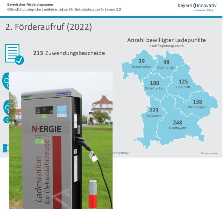 Genehmigt für Oberfranken 48 - Genehmigt für Bad Staffelstein 28 - Davon umgesetzt 14 Ladepunkte an strategisch wichtigen Punkten um die Innenstadt.